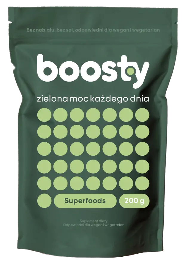 Zielona moc każdego dnia. Twoja energia pomnożona przez Boosty będzie większa, trawienie zdrowsze, trening efektywniejszy, produktywność - wyższa.